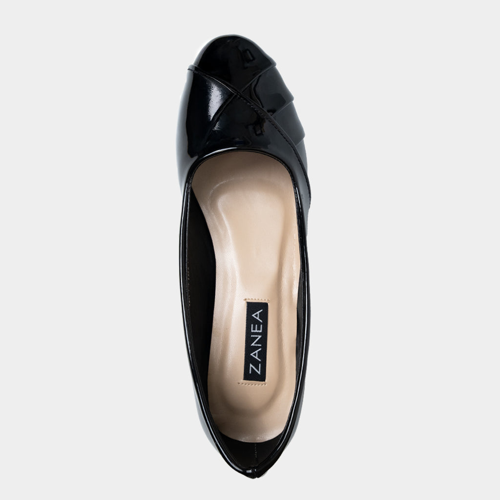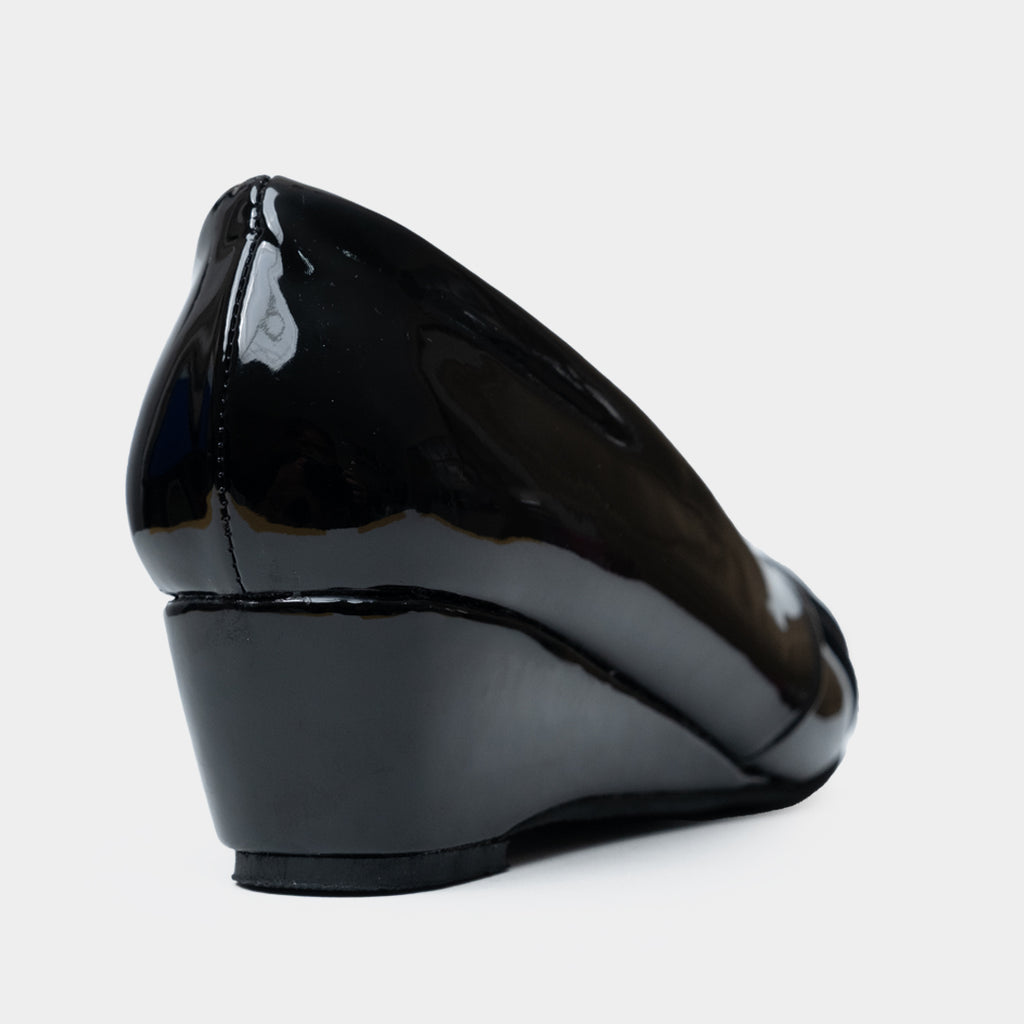 These round-toe pumps are set on 1.5 inch wedge heels,