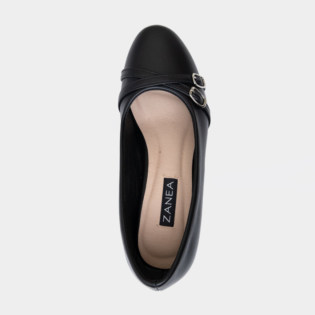 This features a cross strap buckle accessory that adds a slight edge to any outfit.
