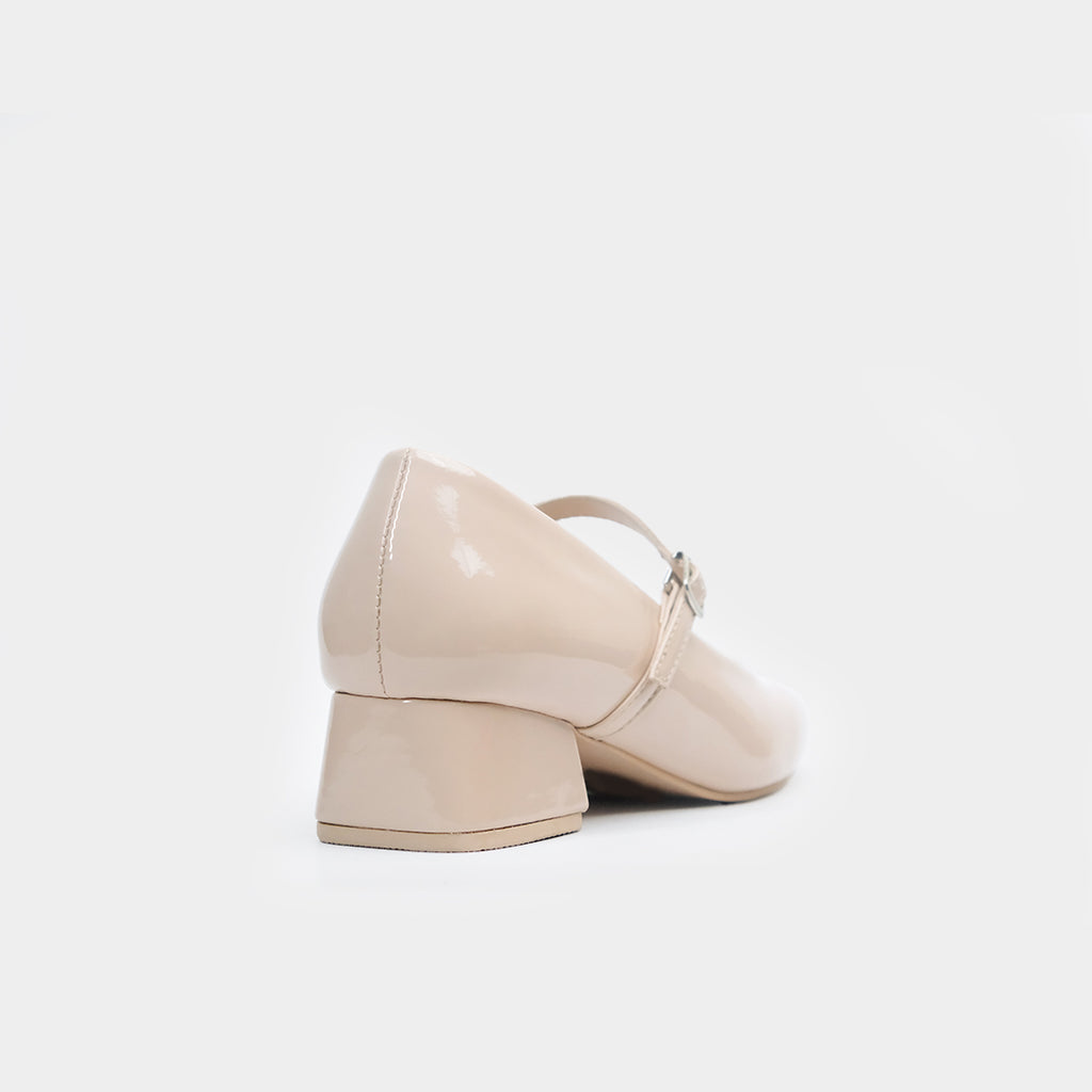 Made of a synthetic patent leather and rubber sole.