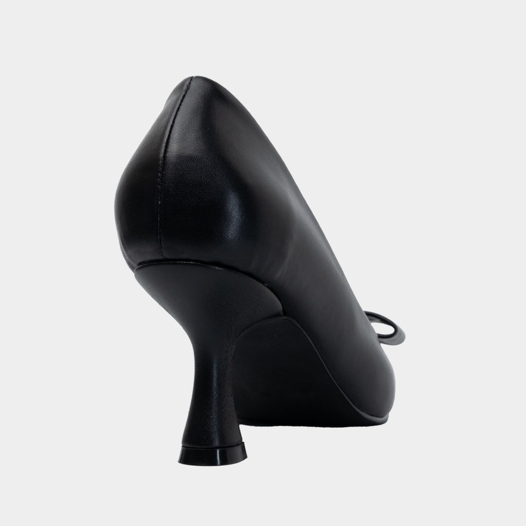 These feature 2.5 inch flare stiletto heels and a bow accessory.