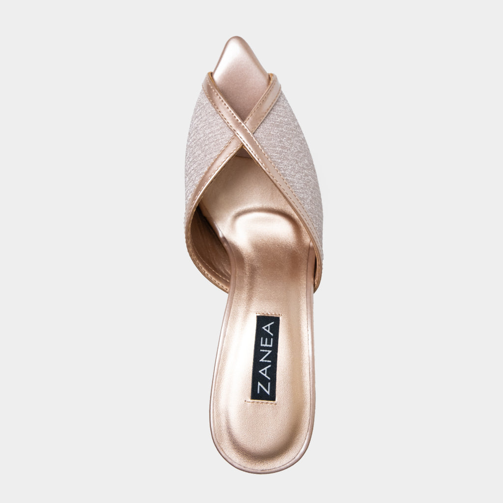 The pointed toe design is for the fashion forward and the glitter material bedazzles any wardrobe.