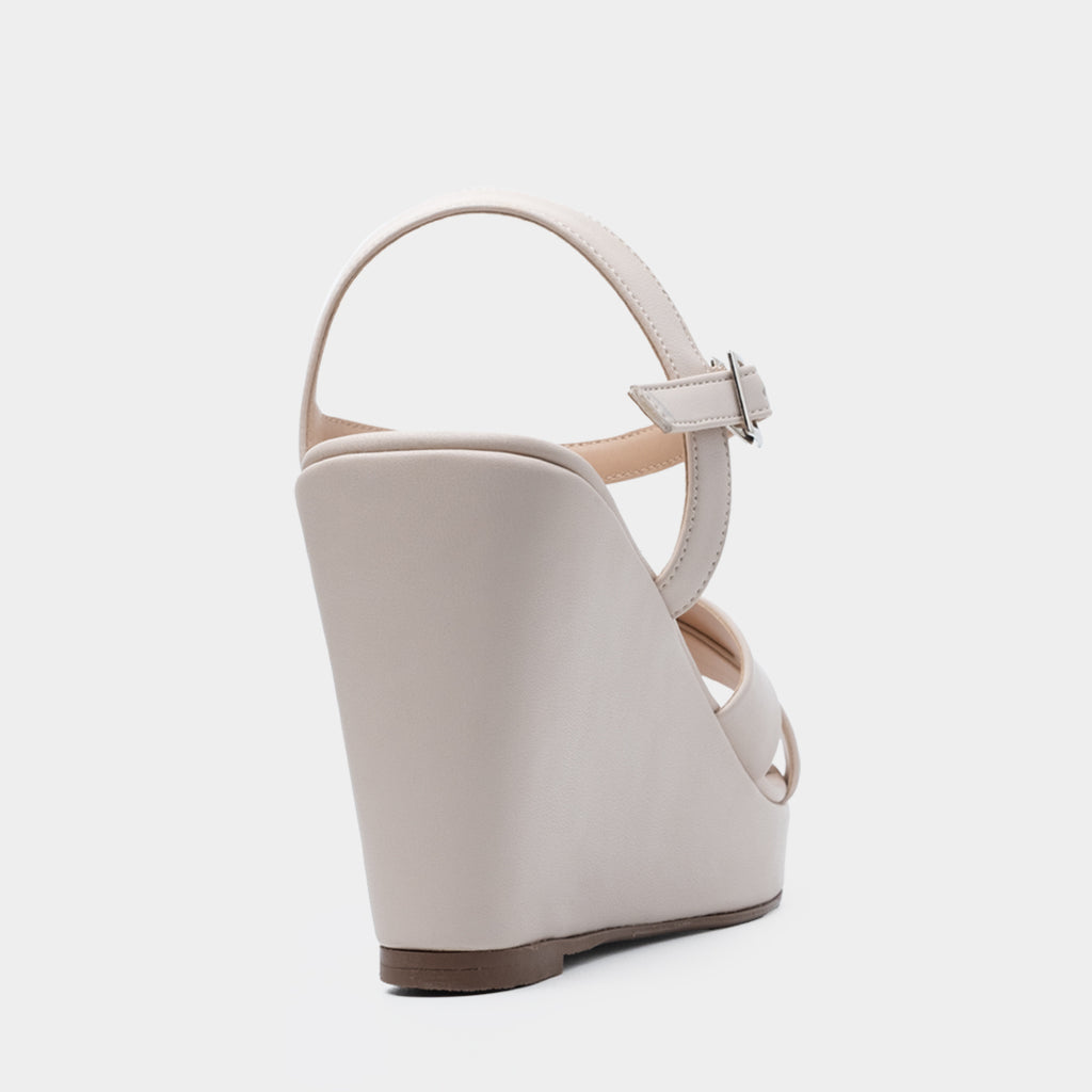 These feature a cross strap design, a buckle ankle strap, and 3.5 inch wedge heels.