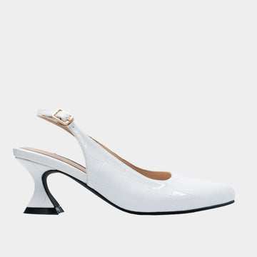 These feature a crocodile effect material and 2.5 inch flare heels.